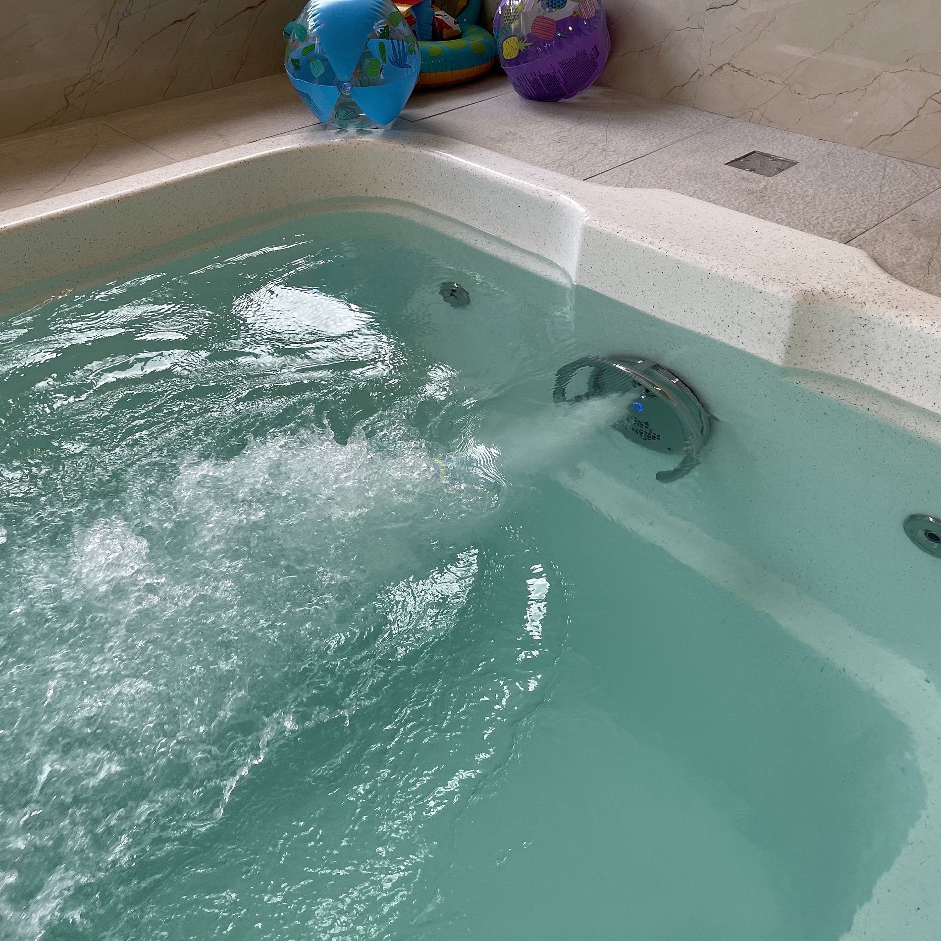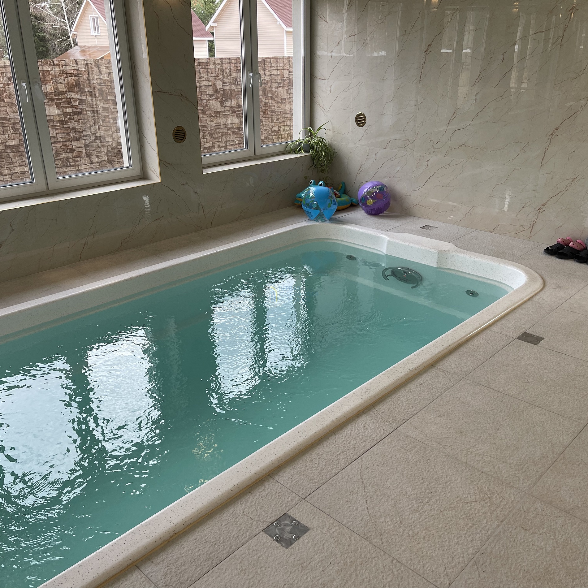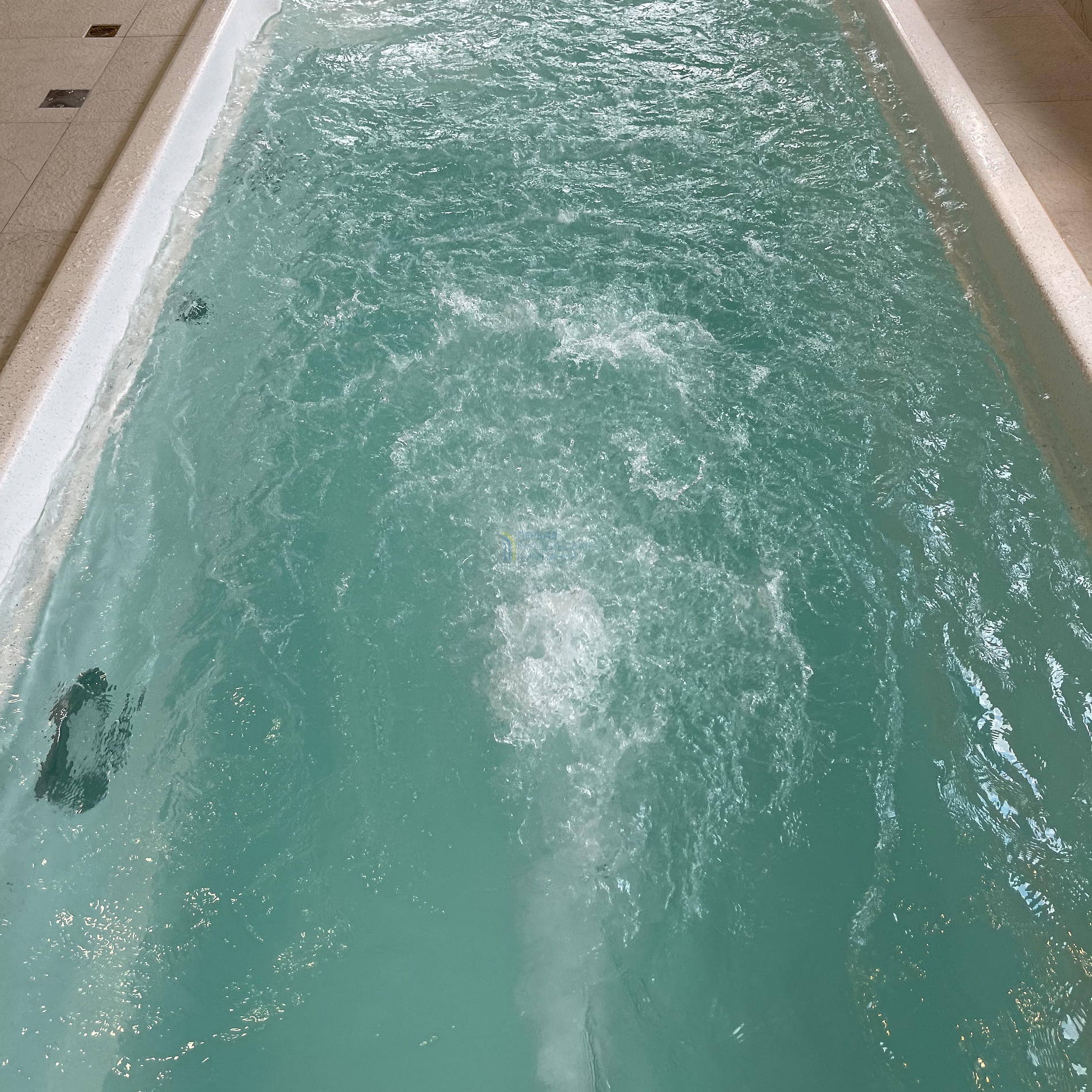 Для развлечений и активного отдыха в бассейне установлен противоток.