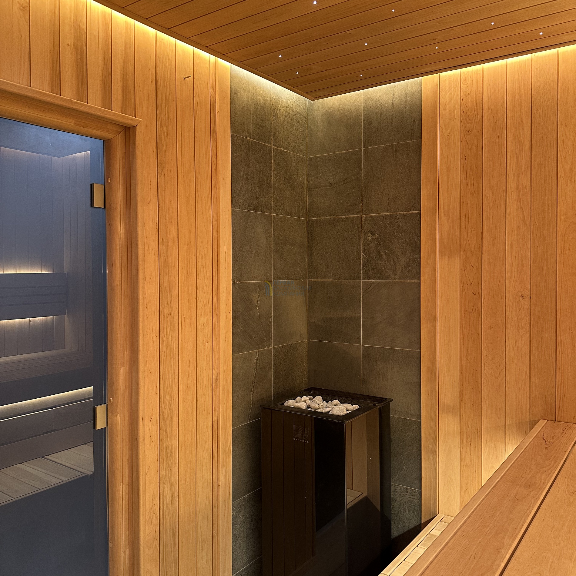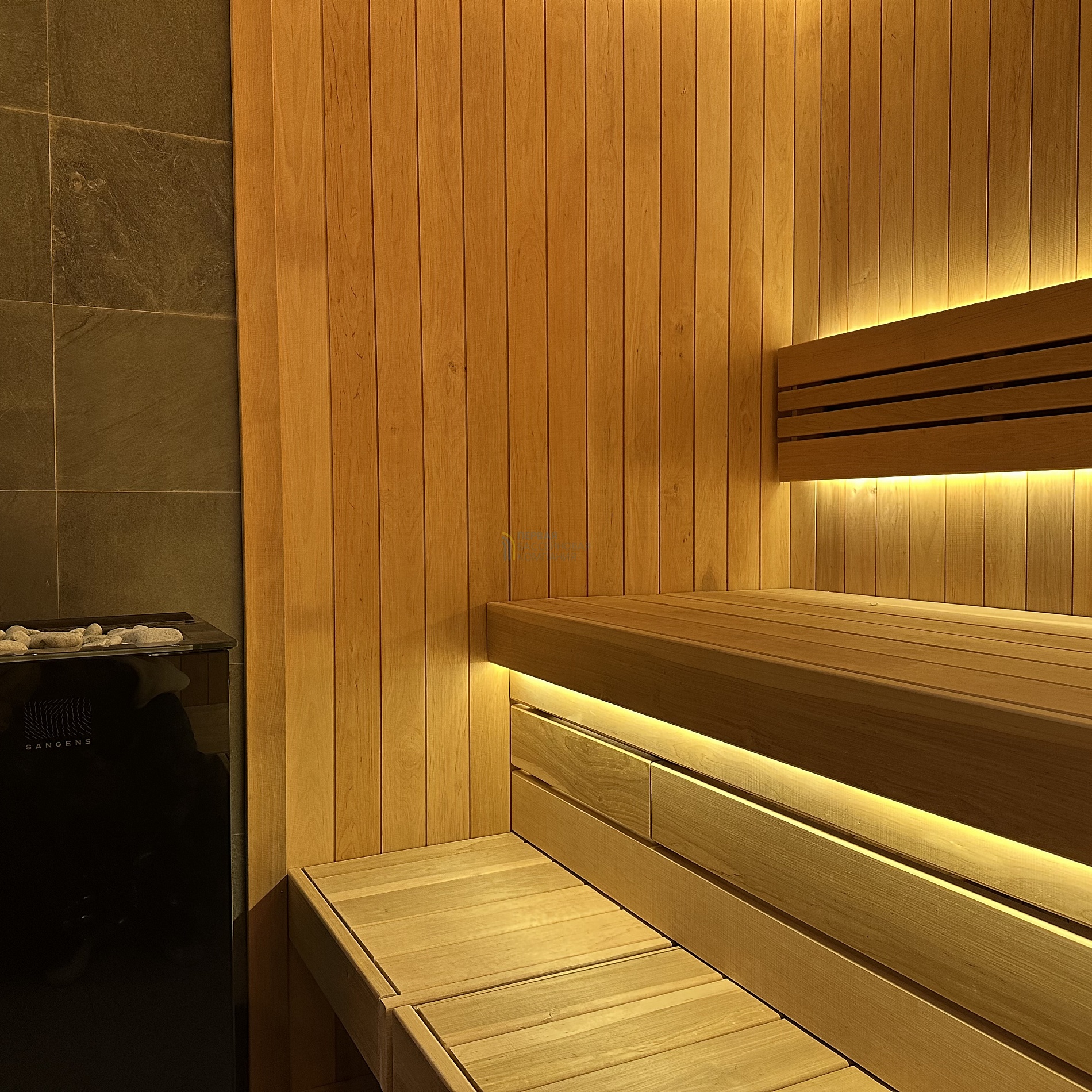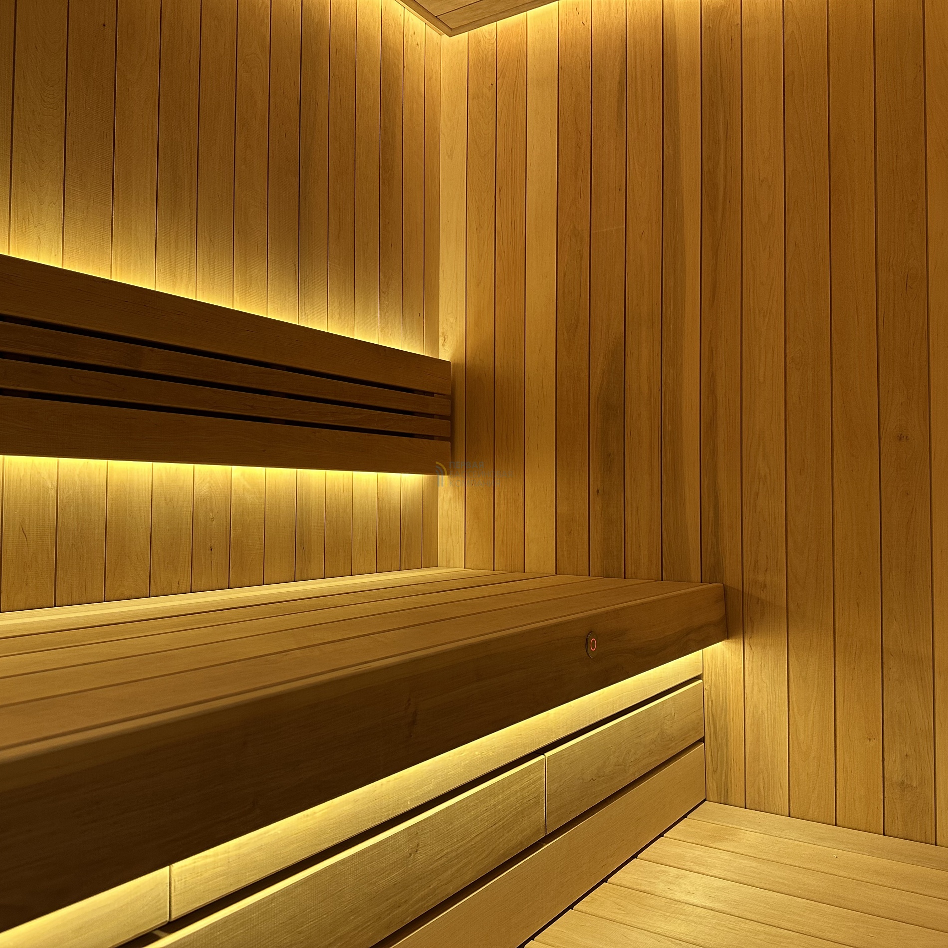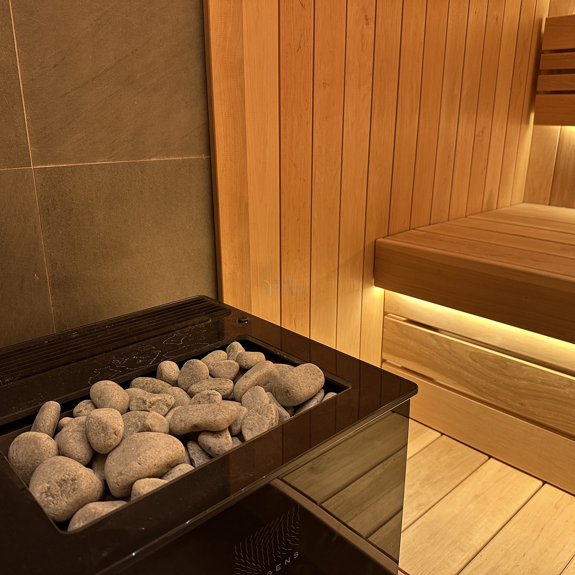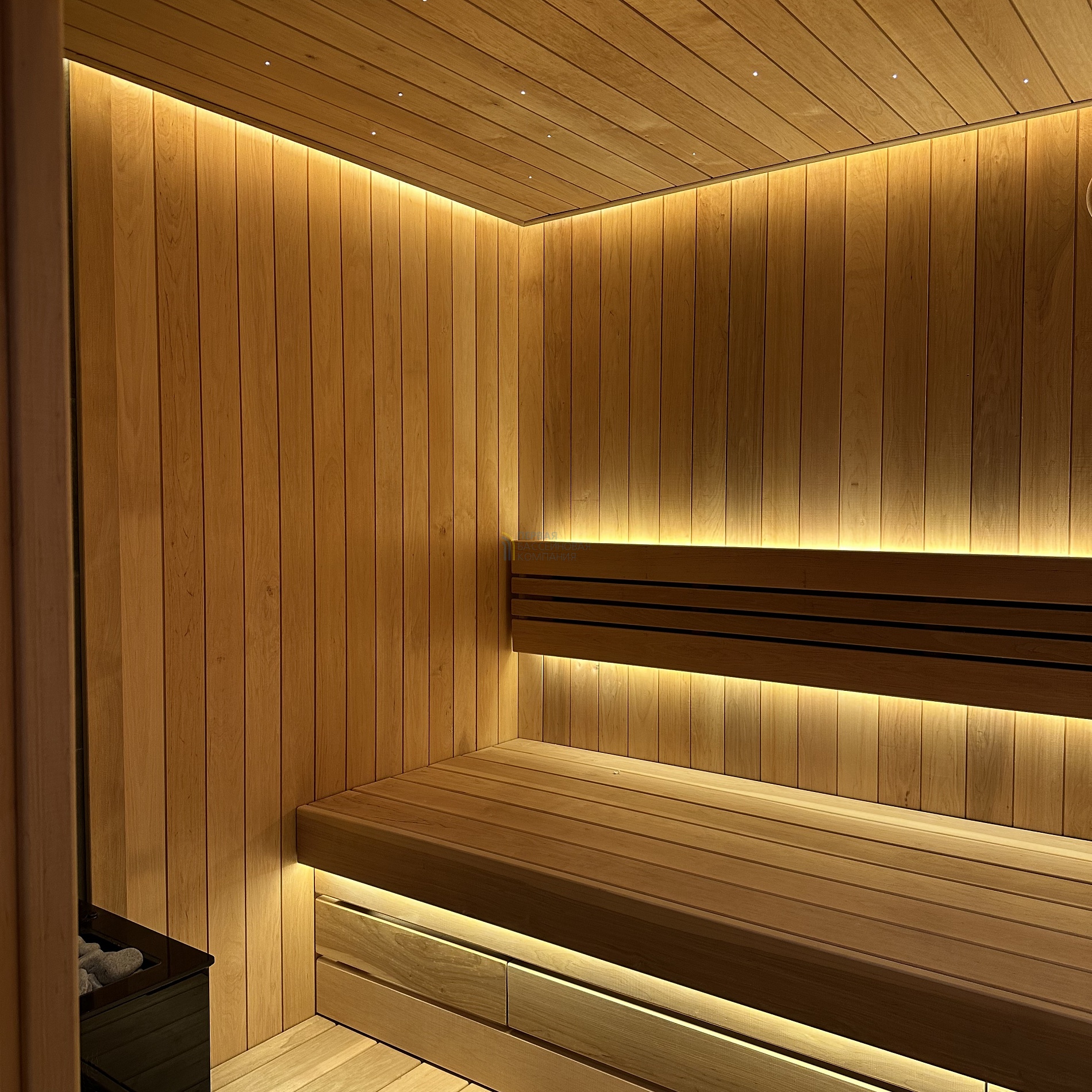 Особенностью сауны является автоматическая подача воды на камни.