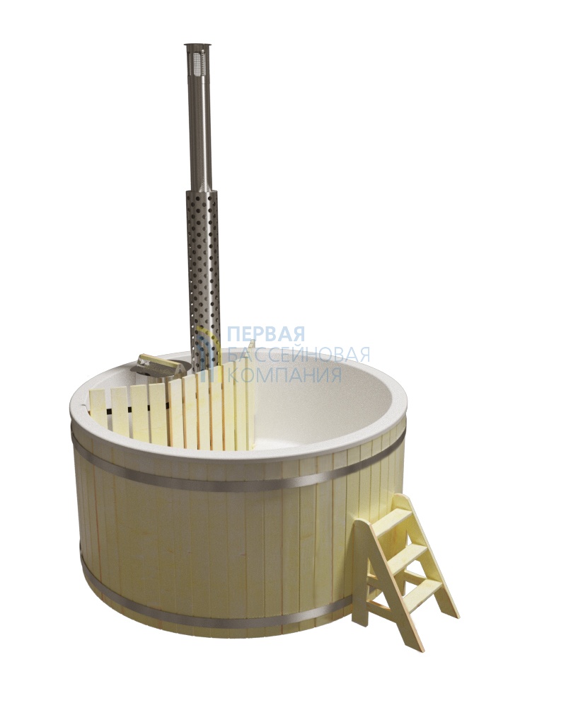 Купели серии «ПРЕМИУМ» является широко распространенной моделью, у которой водогрейная печь из нержавеющей стали AISI 304 мощностью 25 кВт расположена непосредственно в воде, и для обеспечения безопасности огорожена деревянной перегородкой.