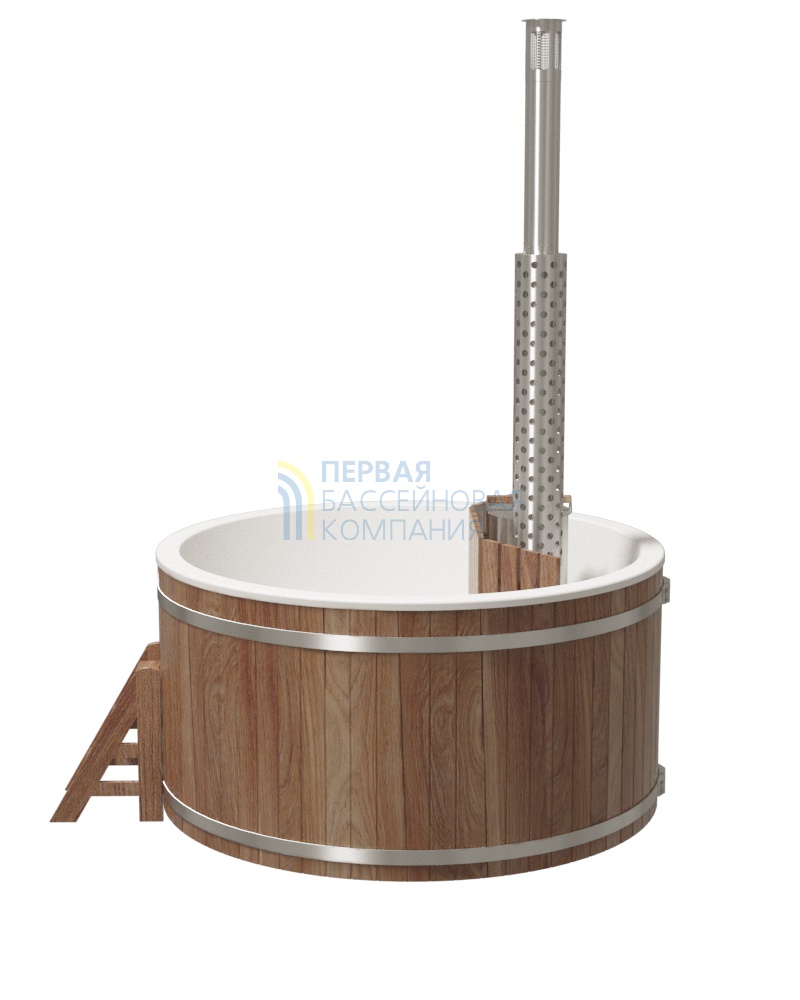 Купели серии «ПРЕМИУМ» является широко распространенной моделью, у которой водогрейная печь из нержавеющей стали AISI 304 мощностью 25 кВт расположена непосредственно в воде, и для обеспечения безопасности огорожена деревянной перегородкой.