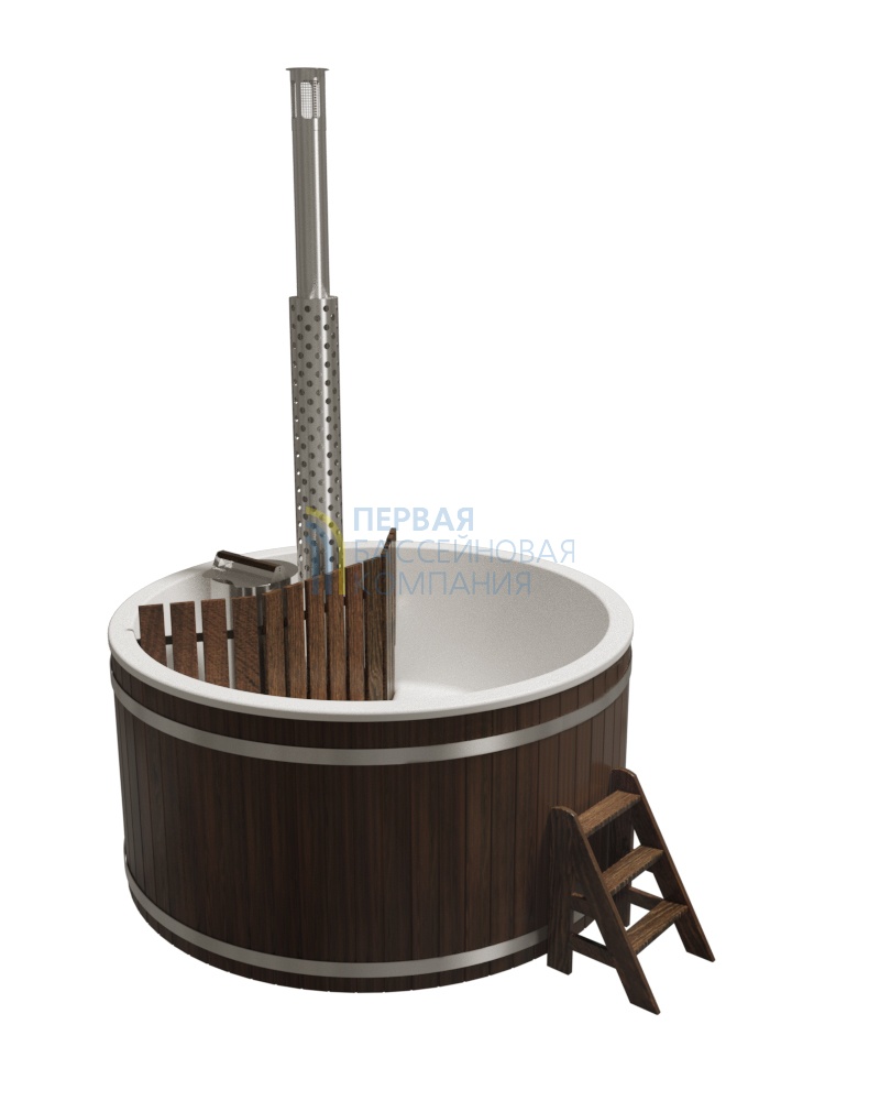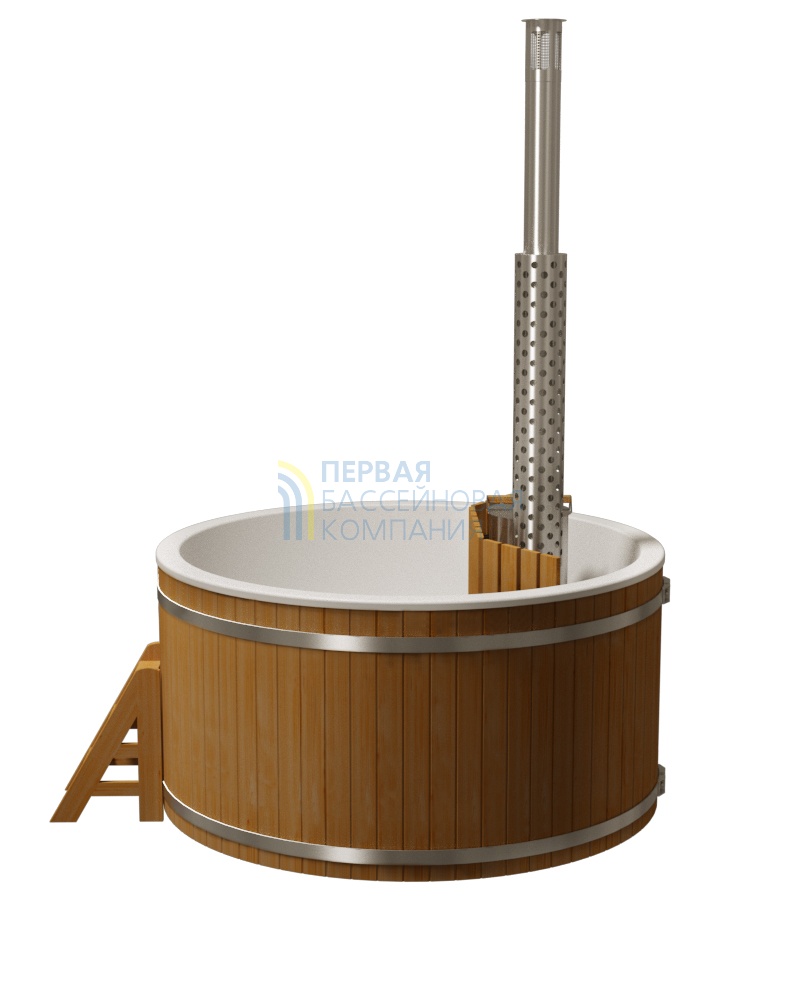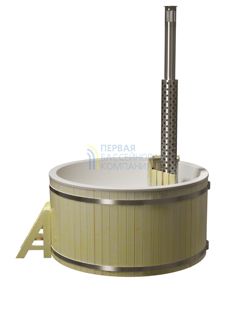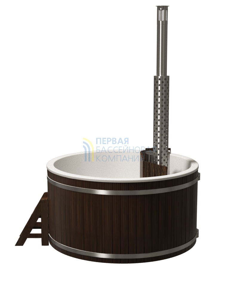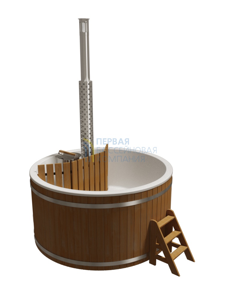 Купели серии «ПРЕМИУМ» является широко распространенной моделью, у которой водогрейная печь из нержавеющей стали AISI 304 мощностью 25 кВт расположена непосредственно в воде, и для обеспечения безопасности огорожена деревянной перегородкой.